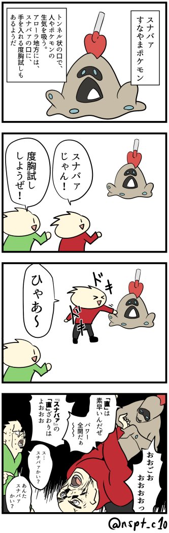ウルトラサンムーンではサンムーンよりも多くのポケモンたちがフィールド内で見ることが出来ます。 モンスターボールから飛び出して 本来のポケモンらしい姿を見ることが出来る のはアローラ地方の冒険の魅力の1つですね。 そんなアローラ地方のポケモンたちと遊べるのがウルトラサン ポケットモンスターサン、ポケットモンスタームーンで初登場する新ポケモン『スナバァ』の存在が、コロコロコミックで掲載されました。 スポンサーリンク 目次スナバァ分類タイプ高さ重さ特性紹介文スナバァの評価 スナ・・・スナバァ 単語 スナバァ スナバァ とは、 ポケットモンスター に登場するNo769の ポケモン である。 初登場は サン・ムーン 。 くちのなかに てを いれたものを あやつってしまう。 すなやまの からだを おおきく させるためだ。